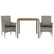 Ta vrtna jedilna garnitura je odlična izbira za večerjo na prostem ali za sprostitev na vrtu, dvorišču ali terasi. Vzdržljiv material: PE ratan, znan tudi kot poli ratan, je močan sintetični material, ki zahteva malo vzdrževanja in je videti kot naravni ratan. Je lahek, enostaven za čiščenje in se zaradi svoje vzdržljivosti in odpornosti na vremenske vplive pogosto uporablja za zunanje pohištvo.Udobno sedenje: Ta zunanja garnitura z debelo podloženimi blazinami zagotavlja udobno sedenje.Prevleko je mogoče odstraniti in oprati: Te sedežne blazine imajo odstranljive prevleke za lažje pranje in vzdrževanje.Stabilna mizna plošča, ki je enostavna za čiščenje: Ta vrtna miza ima ploščo iz akacijevega lesa, ki je čvrsta, vzdržljiva in jo je enostavno čistiti z vlažno krpo. Dobro je vedeti:Če želite, da vaše zunanje pohištvo ostane lepo, vam priporočamo, da ga zaščitite z vodoodporno prevleko.UV-odpornoPotrebno sestavljanje: DaMiza:Barva: SivaMaterial: PE ratan, prašno premazano jeklo, trden akacijev les z oljnim premazomDimenzije: 90 x 90 x 75 cm (Š x G x V)Stol:Barva: SivaMaterial: PE ratan, jeklen okvir s prašnim premazomDimenzije: 53 x 61 x 83 cm (Š x G x V)Velikost sedeža: 44 x 47 cm (Š x G)Višina sedeža od tal (brez blazine): 42 cmVišina naslonjal za roke, merjena od tal: 60 cmMaksimalna nosilnost (na sedež): 110 kgSedežna blazina:Barva: Temno sivaMaterial prevleke: Tkanina (100 % poliester)Material polnila: PenaDimenzije: 44 x 46 x 2,5 cm (Š x G x D) Paket vsebuje:1 x Vrtna miza2 x Vrtni stol2 x Sedežna blazina s snemljivo pralno prevleko 3278675