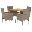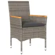 Ta vrtna jedilna garnitura je odlična izbira za večerjo na prostem ali za sprostitev na vrtu, dvorišču ali terasi. Vzdržljiv material: PE ratan, znan tudi kot poli ratan, je močan sintetični material, ki zahteva malo vzdrževanja in je videti kot naravni ratan. Je lahek, enostaven za čiščenje in se zaradi svoje vzdržljivosti in odpornosti na vremenske vplive pogosto uporablja za zunanje pohištvo.Udobno sedenje: Ta zunanja garnitura z debelo podloženimi blazinami zagotavlja udobno sedenje.Prevleko je mogoče odstraniti in oprati: Te sedežne blazine imajo odstranljive prevleke za lažje pranje in vzdrževanje.Stabilna mizna plošča, ki je enostavna za čiščenje: Ta vrtna miza ima ploščo iz akacijevega lesa, ki je čvrsta, vzdržljiva in jo je enostavno čistiti z vlažno krpo. Dobro je vedeti:Če želite, da vaše zunanje pohištvo ostane lepo, vam priporočamo, da ga zaščitite z vodoodporno prevleko.UV-odpornoPotrebno sestavljanje: DaMiza:Barva: SivaMaterial: PE ratan, prašno premazano jeklo, trden akacijev les z oljnim premazomDimenzije: 80 x 80 x 75 cm (Š x G x V)Stol:Barva: SivaMaterial: PE ratan, prašno premazano jeklo, trden akacijev les z oljnim premazomDimenzije: 53 x 61 x 83 cm (Š x G x V)Velikost sedeža: 44 x 47 cm (Š x G)Višina sedeža od tal (brez blazine): 42 cmVišina naslonjal za roke, merjena od tal: 60 cmMaksimalna nosilnost (na sedež): 110 kgSedežna blazina:Barva: Temno sivaMaterial prevleke: Tkanina (100 % poliester)Material polnila: PenaDimenzije: 44 x 46 x 2,5 cm (Š x G x D) Paket vsebuje:1 x Vrtna miza4 x Vrtni stol4 x Sedežna blazina s snemljivo in pralno prevleko 3278700