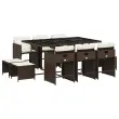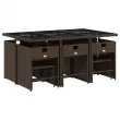 Ta vrtna jedilna garnitura je odlična izbira za večerjo na prostem ali za sprostitev na vrtu, dvorišču ali terasi. Vzdržljiv material: PE ratan, znan tudi kot poli ratan, je močan sintetični material, ki zahteva malo vzdrževanja in je videti kot naravni ratan. Je lahek, enostaven za čiščenje in se zaradi svoje vzdržljivosti in odpornosti na vremenske vplive pogosto uporablja za zunanje pohištvo.Kompaktno shranjevanje: Te stole je mogoče zložiti, zato jih je enostavno shraniti pod mizo. Ko so zloženi, se lepo prilegajo pod mizo in tvorijo prostorsko varčno kocko. Poleg tega je mogoče stolčke shraniti tudi pod stoli, kar še poveča učinkovitost prostora.Udobno sedenje: To zunanje pohištvo z debelo oblazinjenimi blazinami zagotavlja udobno sedenje.Prevleko je mogoče odstraniti in oprati: Te sedežne blazine imajo odstranljive prevleke za lažje pranje in vzdrževanje. Prevleke za blazine za stole imajo na zadnji strani zavihek za enostavno pritrditev na stole.Stabilna in enostavna za čiščenje namizna plošča: Ta vrtna miza ima mizno ploščo iz kaljenega stekla, ki je stabilna, vzdržljiva in jo je enostavno očistiti z vlažno krpo. Dobro je vedeti: Če želite, da vaše zunanje pohištvo ostane lepo, vam priporočamo, da ga zaščitite z vodoodporno prevleko.Maksimalna nosilnost (na sedež): 110 kg UV-odporno Potrebno sestavljanje: Da Miza: Barva mize: RjavaBarva stekla: ČrnaMaterial: PE ratan, jeklo s prašnim premazom, kaljeno stekloDimenzije: 165 x 106 x 73 cm (D x Š x V) Stol: Barva: Rjava Material: PE ratan, jeklen okvir s prašnim premazom Dimenzije: 50,5 x 50 x 79 cm (Š x G x V) Velikost sedišča: 45,5 x 38 cm (Š x G) Višina sedišča, merjena od tal: 43 cm Višina naslonjal za roke, merjena od tal: 63,5 cm Stolček: Barva: Rjava Material: PE ratan, jeklen okvir s prašnim premazom Dimenzije: 41 x 41 x 36 cm (Š x G x V) Blazina: Barva: Kremno bela Material prevleke: Tkanina (100 % poliester) Material polnila: Pena Dimenzije blazine za stol: 76 x 46 x 2 cm (D x Š x D)Dimenzije blazine za stolček: 40 x 40 x 2 cm (Š x G x D) Paket vsebuje:1 x Vrtna miza 6 x Vrtni stol 4 x Vrtni stolček 4 x Sedežna blazina za stolček s snemljivo in pralno prevleko 6 x Blazina za stol z visokim naslonom s snemljivo in pralno prevleko 3277916