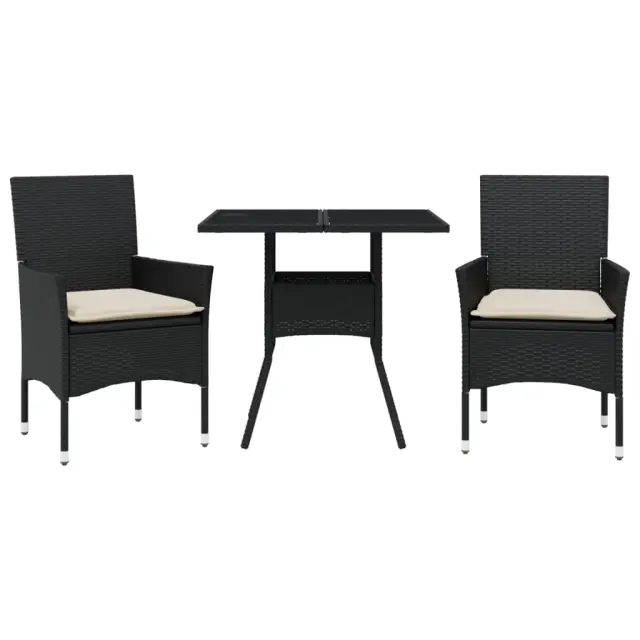 vidaXL Vrtna jedilna garnitura 3-delna z blazinami črn poli ratan