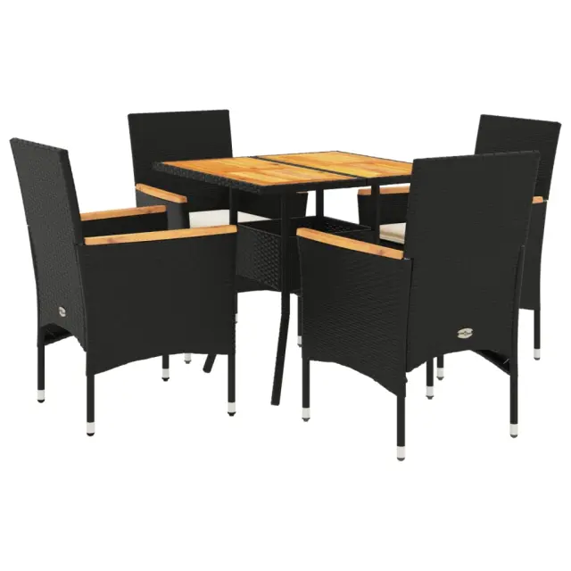 vidaXL Vrtna jedilna garnitura 5-delna z blazinami poli ratan akacija
