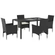 Ta vrtna jedilna garnitura je odlična izbira za večerjo na prostem ali za sprostitev na vrtu, dvorišču ali terasi. Vzdržljiv material: PE ratan, znan tudi kot poli ratan, je močan sintetični material, ki zahteva malo vzdrževanja in je videti kot naravni ratan. Je lahek, enostaven za čiščenje in se zaradi svoje vzdržljivosti in odpornosti na vremenske vplive pogosto uporablja za zunanje pohištvo.Udobno sedenje: Ta zunanja garnitura z debelo podloženimi blazinami zagotavlja udobno sedenje.Prevleko je mogoče odstraniti in oprati: Te sedežne blazine imajo odstranljive prevleke za lažje pranje in vzdrževanje.Steklena mizna plošča: Površina zunanje mize je izdelana iz močnega in trpežnega kaljenega stekla, kar omogoča enostavno čiščenje z vlažno krpo in vašemu zunanjemu prostoru doda pridih elegance. Dobro je vedeti:Če želite, da vaše zunanje pohištvo ostane lepo, vam priporočamo, da ga zaščitite z vodoodporno prevleko.UV-odpornoPotrebno sestavljanje: DaMiza:Barva: ČrnaMaterial: PE ratan, jeklo s prašnim premazom, kaljeno stekloDimenzije: 150 x 90 x 75 cm (Š x G x V)Stol:Barva: ČrnaMaterial: PE ratan, jeklen okvir s prašnim premazomDimenzije: 53 x 61 x 83 cm (Š x G x V)Velikost sedeža: 44 x 47 cm (Š x G)Višina sedeža od tal (brez blazine): 42 cmVišina naslonjal za roke, merjena od tal: 60 cmMaksimalna nosilnost (na sedež): 110 kgSedežna blazina:Barva: Kremno belaMaterial prevleke: Tkanina (100 % poliester)Material polnila: PenaDimenzije: 44 x 46 x 2,5 cm (Š x G x D) Paket vsebuje:1 x Vrtna miza4 x Vrtni stol4 x Sedežna blazina s snemljivo in pralno prevleko 3278539