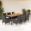 vidaXL Vrtna jedilna garnitura 9-delna z blazinami črn poli ratan