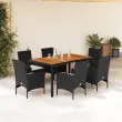 vidaXL Vrtna jedilna garnitura 7-delna z blazinami črn poli ratan