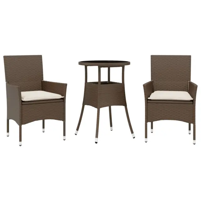 vidaXL Vrtna jedilna garnitura 3-delna z blazinami rjav poli ratan