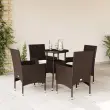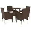 vidaXL Vrtna jedilna garnitura 5-delna z blazinami rjav poli ratan