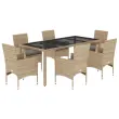 vidaXL Vrtna jedilna garnitura 7-delna z blazinami bež PE ratan steklo