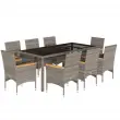 vidaXL Vrtna jedilna garnitura 9-delna blazine siv poli ratan steklo