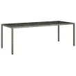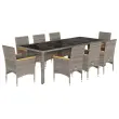 Ta vrtna jedilna garnitura je odlična izbira za večerjo na prostem ali za sprostitev na vrtu, dvorišču ali terasi. Vzdržljiv material: PE ratan, znan tudi kot poli ratan, je močan sintetični material, ki zahteva malo vzdrževanja in je videti kot naravni ratan. Je lahek, enostaven za čiščenje in se zaradi svoje vzdržljivosti in odpornosti na vremenske vplive pogosto uporablja za zunanje pohištvo.Udobno sedenje: Ta zunanja garnitura z debelo podloženimi blazinami zagotavlja udobno sedenje.Prevleko je mogoče odstraniti in oprati: Te sedežne blazine imajo odstranljive prevleke za lažje pranje in vzdrževanje.Steklena mizna plošča: Površina zunanje mize je izdelana iz močnega in trpežnega kaljenega stekla, kar omogoča enostavno čiščenje z vlažno krpo in vašemu zunanjemu prostoru doda pridih elegance. Dobro je vedeti:Če želite, da vaše zunanje pohištvo ostane lepo, vam priporočamo, da ga zaščitite z vodoodporno prevleko.UV-odpornoPotrebno sestavljanje: DaMiza:Barva: SivaMaterial: PE ratan, jeklo s prašnim premazom, kaljeno stekloDimenzije: 250 x 100 x 75 cm (D x Š x V)Stol:Barva: SivaMaterial: PE ratan, prašno premazano jeklo, trden akacijev les z oljnim premazomDimenzije: 53 x 61 x 83 cm (Š x G x V)Velikost sedeža: 44 x 47 cm (Š x G)Višina sedeža od tal (brez blazine): 42 cmVišina naslonjal za roke, merjena od tal: 60 cmMaksimalna nosilnost (na sedež): 110 kgSedežna blazina:Barva: Temno sivaMaterial prevleke: Tkanina (100 % poliester)Material polnila: PenaDimenzije: 44 x 46 x 2,5 cm (Š x G x D) Paket vsebuje:1 x Vrtna miza8 x Vrtni stol8 x Sedežna blazina s snemljivo in pralno prevleko 3278735