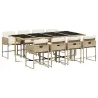 vidaXL Vrtna jedilna garnitura 9-delna z blazinami bež poli ratan