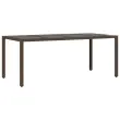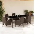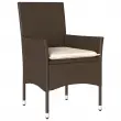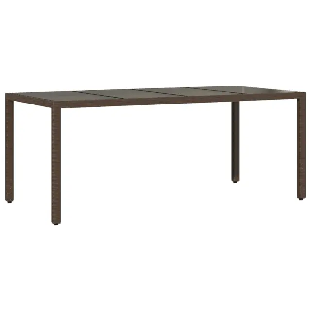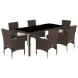 Ta vrtna jedilna garnitura je odlična izbira za večerjo na prostem ali za sprostitev na vrtu, dvorišču ali terasi. Vzdržljiv material: PE ratan, znan tudi kot poli ratan, je močan sintetični material, ki zahteva malo vzdrževanja in je videti kot naravni ratan. Je lahek, enostaven za čiščenje in se zaradi svoje vzdržljivosti in odpornosti na vremenske vplive pogosto uporablja za zunanje pohištvo.Udobno sedenje: Ta zunanja garnitura z debelo podloženimi blazinami zagotavlja udobno sedenje.Prevleko je mogoče odstraniti in oprati: Te sedežne blazine imajo odstranljive prevleke za lažje pranje in vzdrževanje.Steklena mizna plošča: Površina zunanje mize je izdelana iz močnega in trpežnega kaljenega stekla, kar omogoča enostavno čiščenje z vlažno krpo in vašemu zunanjemu prostoru doda pridih elegance. Dobro je vedeti:Če želite, da vaše zunanje pohištvo ostane lepo, vam priporočamo, da ga zaščitite z vodoodporno prevleko.UV-odpornoPotrebno sestavljanje: DaMiza:Barva: RjavaMaterial: PE ratan, jeklo s prašnim premazom, kaljeno stekloDimenzije: 190 x 90 x 75 cm (Š x G x V)Stol:Barva: RjavaMaterial: PE ratan, jeklen okvir s prašnim premazomDimenzije: 53 x 61 x 83 cm (Š x G x V)Velikost sedeža: 44 x 47 cm (Š x G)Višina sedeža od tal (brez blazine): 42 cmVišina naslonjal za roke, merjena od tal: 60 cmMaksimalna nosilnost (na sedež): 110 kgSedežna blazina:Barva: Kremno belaMaterial prevleke: Tkanina (100 % poliester)Material polnila: PenaDimenzije: 44 x 46 x 2,5 cm (Š x G x D) Paket vsebuje:1 x Vrtna miza6 x Vrtni stol6 x Sedežna blazina s snemljivo pralno prevleko 3278553