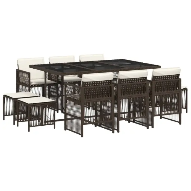 vidaXL Vrtna jedilna garnitura 11-delna z blazinami rjava poli ratan