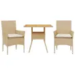 vidaXL Vrtna jedilna garnitura 3-delna z blazinami bež poli ratan