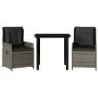 vidaXL Vrtna jedilna garnitura 3-delna z blazinami siv poli ratan