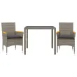 vidaXL Vrtna jedilna garnitura 3-delna z blazinami siv poli ratan