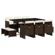Ta vrtna jedilna garnitura je odlična izbira za večerjo na prostem ali za sprostitev na vrtu, dvorišču ali terasi. Vzdržljiv material: PE ratan, znan tudi kot poli ratan, je močan sintetični material, ki zahteva malo vzdrževanja in je videti kot naravni ratan. Je lahek, enostaven za čiščenje in se zaradi svoje vzdržljivosti in odpornosti na vremenske vplive pogosto uporablja za zunanje pohištvo.Kompaktno shranjevanje: Te stole je mogoče zložiti, zato jih je enostavno shraniti pod mizo. Ko so zloženi, se lepo prilegajo pod mizo in tvorijo prostorsko varčno kocko. Poleg tega je mogoče stolčke shraniti tudi pod stole, kar še poveča prostorsko učinkovitost. Udobno sedenje: To zunanje pohištvo z debelo oblazinjenimi blazinami zagotavlja udobno sedenje.Prevleko je mogoče odstraniti in oprati: Te sedežne blazine imajo odstranljive prevleke za lažje pranje in vzdrževanje.Steklena mizna plošča: Površina zunanje mize je izdelana iz močnega in trpežnega kaljenega stekla, kar omogoča enostavno čiščenje z vlažno krpo in vašemu zunanjemu prostoru doda pridih elegance. Dobro je vedeti: Če želite, da vaše zunanje pohištvo ostane lepo, vam priporočamo, da ga zaščitite z vodoodporno prevleko.Maksimalna nosilnost (na sedež): 110 kg UV-odporno Potrebno sestavljanje: Da Miza: Barva: Rjava in črnaMaterial: PE ratan, jeklo s prašnim premazom, kaljeno stekloDimenzije: 165 x 106 x 73 cm (D x Š x V) Stol: Barva: RjavaMaterial: PE ratan, jeklen okvir s prašnim premazom Dimenzije: 50,5 x 54 x 79 cm (Š x G x V) Velikost sedišča: 45,5 x 38 cm (Š x G) Višina sedišča, merjena od tal: 43 cm Višina naslonjal za roke, merjena od tal: 63,5 cmStolček: Barva: RjavaMaterial: PE ratan, jeklen okvir s prašnim premazom Dimenzije: 41 x 41 x 36 cm (Š x G x V) Blazina: Barva: Kremno bela Material prevleke: Tkanina (100 % poliester) Material polnila: Pena Dimenzije blazine za stol: 76 x 46 x 2 cm (D x Š x D)Dimenzije blazine za stolček: 40 x 40 x 2 cm (Š x G x D) Paket vsebuje:1 x Vrtna miza 6 x Vrtni stol 4 x Vrtni stolček 4 x Sedežna blazina za stolček s snemljivo in pralno prevleko 6 x Blazina za stol z visokim naslonom s snemljivo in pralno prevleko 3277736