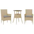vidaXL Vrtna jedilna garnitura 3-delna z blazinami bež poli ratan