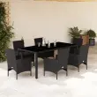 vidaXL Vrtna jedilna garnitura 7-delna z blazinami črn poli ratan