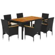 vidaXL Vrtna jedilna garnitura 7-delna z blazinami črn poli ratan