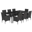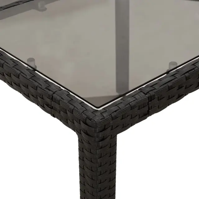 Ta vrtna jedilna garnitura je odlična izbira za večerjo na prostem ali za sprostitev na vrtu, dvorišču ali terasi. Vzdržljiv material: PE ratan, znan tudi kot poli ratan, je močan sintetični material, ki zahteva malo vzdrževanja in je videti kot naravni ratan. Je lahek, enostaven za čiščenje in se zaradi svoje vzdržljivosti in odpornosti na vremenske vplive pogosto uporablja za zunanje pohištvo.Udobno sedenje: Ta zunanja garnitura z debelo podloženimi blazinami zagotavlja udobno sedenje.Prevleko je mogoče odstraniti in oprati: Te sedežne blazine imajo odstranljive prevleke za lažje pranje in vzdrževanje.Steklena mizna plošča: Površina zunanje mize je izdelana iz močnega in trpežnega kaljenega stekla, kar omogoča enostavno čiščenje z vlažno krpo in vašemu zunanjemu prostoru doda pridih elegance. Dobro je vedeti:Če želite, da vaše zunanje pohištvo ostane lepo, vam priporočamo, da ga zaščitite z vodoodporno prevleko.UV-odpornoPotrebno sestavljanje: DaMiza:Barva: ČrnaMaterial: PE ratan, jeklo s prašnim premazom, kaljeno stekloDimenzije: 190 x 90 x 75 cm (Š x G x V)Stol:Barva: ČrnaMaterial: PE ratan, jeklen okvir s prašnim premazomDimenzije: 53 x 61 x 83 cm (Š x G x V)Velikost sedeža: 44 x 47 cm (Š x G)Višina sedeža od tal (brez blazine): 42 cmVišina naslonjal za roke, merjena od tal: 60 cmMaksimalna nosilnost (na sedež): 110 kgSedežna blazina:Barva: Kremno belaMaterial prevleke: Tkanina (100 % poliester)Material polnila: PenaDimenzije: 44 x 46 x 2,5 cm (Š x G x D) Paket vsebuje:1 x Vrtna miza8 x Vrtni stol8 x Sedežna blazina s snemljivo in pralno prevleko 3278542