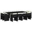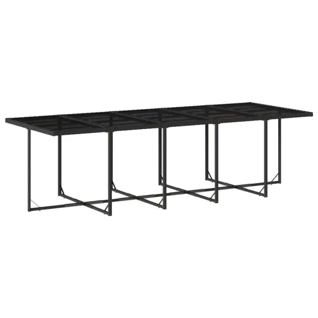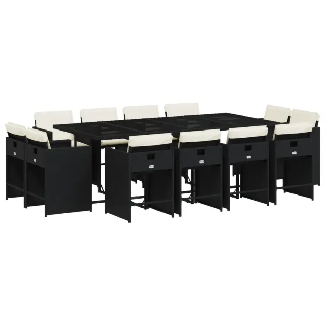 Ta vrtna jedilna garnitura je odlična izbira za večerjo na prostem ali za sprostitev na vrtu, dvorišču ali terasi. Vzdržljiv material: PE ratan, znan tudi kot poli ratan, je močan sintetični material, ki zahteva malo vzdrževanja in je videti kot naravni ratan. Je lahek, enostaven za čiščenje in se zaradi svoje vzdržljivosti in odpornosti na vremenske vplive pogosto uporablja za zunanje pohištvo.Kompaktno shranjevanje: Te stole je mogoče zložiti, zato jih je enostavno shraniti pod mizo. Ko so zloženi, se lepo prilegajo pod mizo in tvorijo prostorsko varčno kocko.Udobno sedenje: To zunanje pohištvo z debelo oblazinjenimi blazinami zagotavlja udobno sedenje.Prevleko je mogoče odstraniti in oprati: Te sedežne blazine imajo odstranljive prevleke za lažje pranje in vzdrževanje. Prevleke za blazine za stole imajo na zadnji strani zavihek za enostavno pritrditev na stole.Stabilna in enostavna za čiščenje namizna plošča: Ta vrtna miza ima mizno ploščo iz kaljenega stekla, ki je stabilna, vzdržljiva in jo je enostavno očistiti z vlažno krpo. Dobro je vedeti: Če želite, da vaše zunanje pohištvo ostane lepo, vam priporočamo, da ga zaščitite z vodoodporno prevleko.Maksimalna nosilnost (na sedež): 110 kg UV-odporno Potrebno sestavljanje: Da Miza: Barva mizice: ČrnaBarva stekla: ČrnaMaterial: PE ratan, jeklo s prašnim premazom, kaljeno stekloDimenzije: 220 x 106 x 73 cm (D x Š x V) Stol: Barva: Črna Material: PE ratan, jeklen okvir s prašnim premazom Dimenzije: 50,5 x 50 x 79 cm (Š x G x V) Velikost sedišča: 45,5 x 38 cm (Š x G) Višina sedišča, merjena od tal: 43 cm Višina naslonjal za roke, merjena od tal: 63,5 cm Blazina: Barva: Kremno bela Material prevleke: Tkanina (100 % poliester) Material polnila: Pena Dimenzije blazine za stol: 76 x 46 x 2 cm (D x Š x D) Paket vsebuje:1 x Vrtna miza 12 x Vrtni stol 12 x Blazina za stol z visokim naslonom s snemljivo in pralno prevleko 3277985