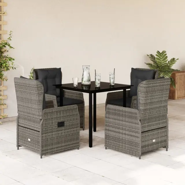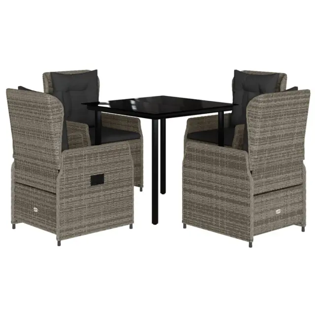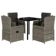 vidaXL Vrtna jedilna garnitura 5-delna z blazinami siv poli ratan