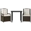 vidaXL Vrtna jedilna garnitura 3-delna z blazinami rjav poli ratan
