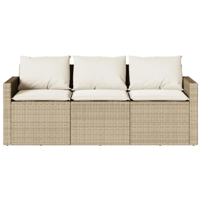 Ta vrtna jedilna garnitura je odlična izbira za večerjo na prostem ali za sprostitev na vrtu, dvorišču ali terasi. Vzdržljiv material: PE ratan, znan tudi kot poli ratan, je močan sintetični material, ki zahteva malo vzdrževanja in je videti kot naravni ratan. Je lahek, enostaven za čiščenje in se zaradi svoje vzdržljivosti in odpornosti na vremenske vplive pogosto uporablja za zunanje pohištvo.Steklena mizna plošča: Površina zunanje mize je izdelana iz močnega in trpežnega kaljenega stekla, kar omogoča enostavno čiščenje z vlažno krpo in vašemu zunanjemu prostoru doda pridih elegance.Udobno sedenje: To zunanje pohištvo z debelo oblazinjenimi blazinami zagotavlja udobno sedenje.Prevleko je mogoče odstraniti in oprati: Te sedežne blazine imajo odstranljive prevleke za lažje pranje in vzdrževanje.Robusten in stabilen okvir: Prašno barvan jekleni okvir zagotavlja, da je vrtno pohištvo močno in stabilno za vsakodnevno uporabo na prostem. Dobro je vedeti:Če želite, da vaše zunanje pohištvo ostane lepo, vam priporočamo, da ga zaščitite z vodoodporno prevleko.Maksimalna nosilnost (na sedež): 110 kgUV-odpornoPotrebno sestavljanje: DaKavč trosed:Barva: BežMaterial: PE ratan, jeklen okvir s prašnim premazomDimenzije: 177 x 70 x 68 cm (Š x G x V)Velikost sedeža: 162 x 61 cm (Š x G)Višina sedeža od tal: 38,5 cmVišina naslonjala za roke, merjena od tal: 56 cmŠirina naslonjala za roke: 8 cmMiza:Barva: BežMaterial: PE ratan, jeklo s prašnim premazom, kaljeno stekloDimenzije: 110 x 68 x 70 cm (D x Š x V)Blazina:Barva: Kremno belaMaterial prevleke: Tkanina (100 % poliester)Polnilo sedežne blazine: PenaPolnilo hrbtne blazine: bombažna vlaknaDimenzije sedežne blazine: 56 x 64 x 3 cm (Š x G x D)Dimenzije hrbtne blazine: 56 x 36 x 12 cm (D × Š × D)Paket vsebuje:1 x Kavč trosed1 x Vrtna miza3 x Blazina za hrbet6 x Sedežna blazina s snemljivo pralno prevleko 366332