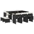 vidaXL Vrtna jedilna garnitura 11-delna z blazinami črna poli ratan