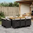 vidaXL Vrtna jedilna garnitura 11-delna z blazinami črna poli ratan