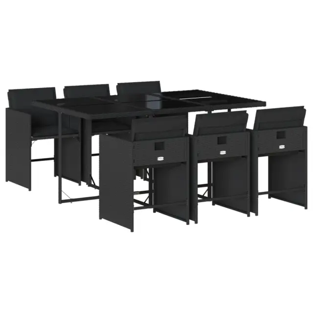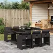 vidaXL Vrtna jedilna garnitura 7-delna z blazinami črna poli ratan