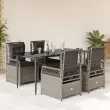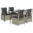 Ta vrtna jedilna garnitura je odlična izbira za večerjo na prostem ali za sprostitev na vrtu, dvorišču ali terasi. Vzdržljiv material: PE ratan, znan tudi kot poli ratan, je močan sintetični material, ki zahteva malo vzdrževanja in je videti kot naravni ratan. Je lahek, enostaven za čiščenje in se zaradi svoje vzdržljivosti in odpornosti na vremenske vplive pogosto uporablja za zunanje pohištvo.Nastavljivo naslonjalo: Ta vrtni sedež ima ročaj. S potegom ročaja lahko naslonjalo nastavite v poljuben položaj in ga hitro vrnete v prvotni položaj.Udobno sedenje: To zunanje pohištvo z debelo oblazinjenimi blazinami zagotavlja udobno sedenje.Prevleko je mogoče odstraniti in oprati: Sedežna blazina ima odstranljivo prevleko za enostavno pranje in vzdrževanje.Steklena mizna plošča: Površina zunanje mize je izdelana iz močnega in trpežnega kaljenega stekla, kar omogoča enostavno čiščenje z vlažno krpo in vašemu zunanjemu prostoru doda pridih elegance. Dobro je vedeti:Če želite, da vaše zunanje pohištvo ostane lepo, vam priporočamo, da ga zaščitite z vodoodporno prevleko.Maksimalna nosilnost (na sedež): 110 kgUV-odpornoPotrebno sestavljanje: DaMiza:Barva: ČrnaMaterial: Jeklo s prašnim premazom, kaljeno stekloDimenzije mize: 160 x 80 x 74 cm (D x Š x V)Vrtni naslanjač:Barva: Svetlo sivaMaterial: PE ratan, jeklen okvir s prašnim premazomDimenzije v sedečem položaju: 55 x 60 x 93 cm (Š x G x V)Dimenzije v ležečem položaju: 55 x 89 x 83 cm (Š x G x V)Velikost sedeža: 48 x 55 cm (Š x G)Višina sedeža, merjena od tal: 42 cmVišina naslonjala za roke, merjena od tal: 58 cmBlazina:Barva: Temno sivaMaterial prevleke: Tkanina (100 % poliester)Polnilo sedežne blazine: PenaPolnilo hrbtne blazine: bombažna vlaknaDimenzije sedežne blazine: 48 x 55 x 3 cm (Š x G x D)Dimenzije hrbtne blazine: 48 x 50 x 10 cm (D x Š x D)Paket vsebuje:1 x Vrtna miza4 x Vrtni stol s funkcijo nagiba4 x Blazina za hrbet4 x Sedežna blazina s snemljivo in pralno prevleko 3263030