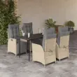 vidaXL Vrtna jedilna garnitura 5-delna z blazinami bež poli ratan