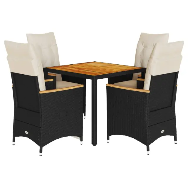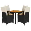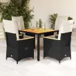vidaXL Vrtna jedilna garnitura 5-delna z blazinami črn poli ratan