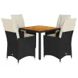 vidaXL Vrtna jedilna garnitura 5-delna z blazinami črn poli ratan