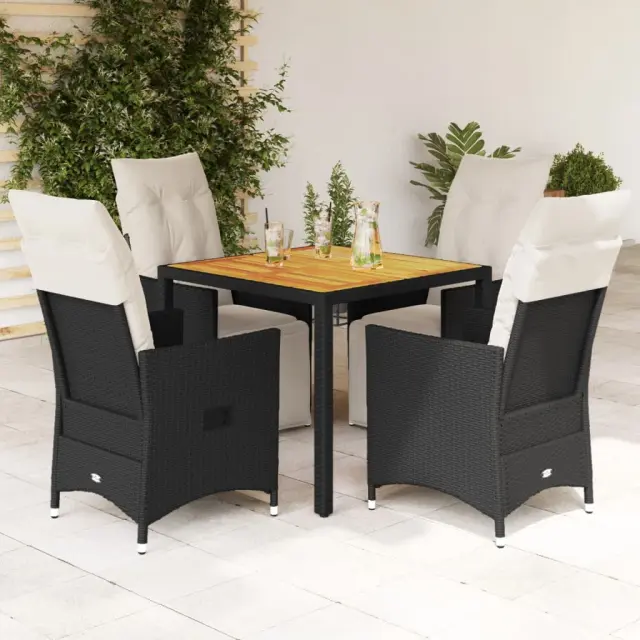 vidaXL Vrtna jedilna garnitura 5-delna z blazinami črn poli ratan