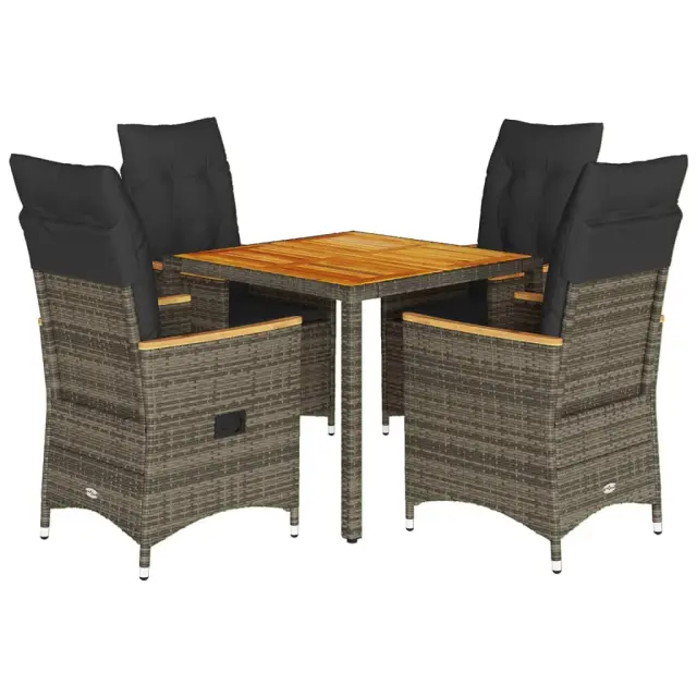 vidaXL Vrtna jedilna garnitura 5-delna z blazinami siv poli ratan