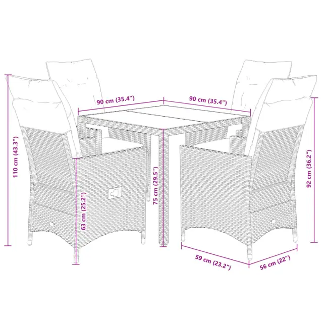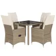 vidaXL Vrtna jedilna garnitura 5-delna z blazinami bež poli ratan