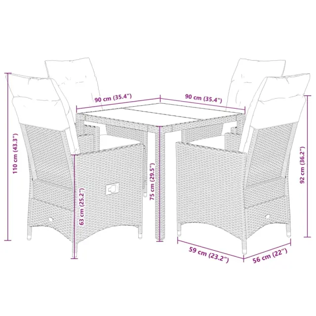 vidaXL Vrtna jedilna garnitura 5-delna z blazinami siv poli ratan