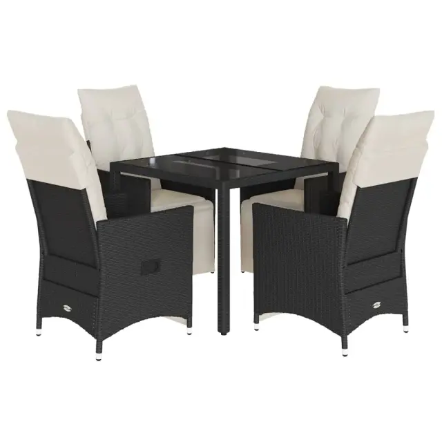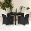 vidaXL Vrtna jedilna garnitura 5-delna z blazinami črn poli ratan