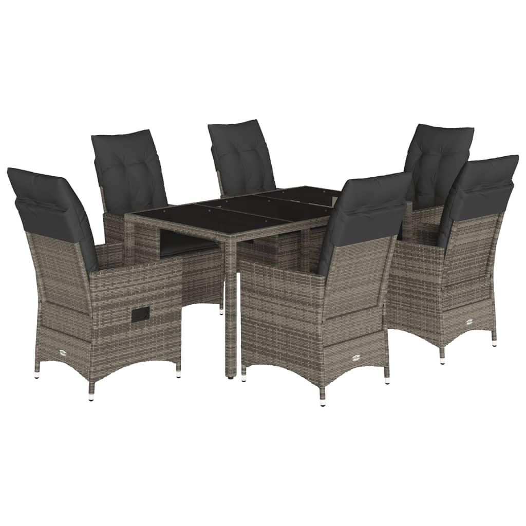 vidaXL Vrtna jedilna garnitura 7-delna z blazinami siv poli ratan