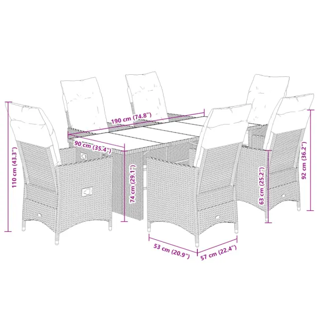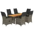 vidaXL Vrtna jedilna garnitura 7-delna z blazinami siv poli ratan