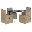 vidaXL Vrtna jedilna garnitura 5-delna z blazinami bež poli ratan