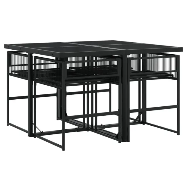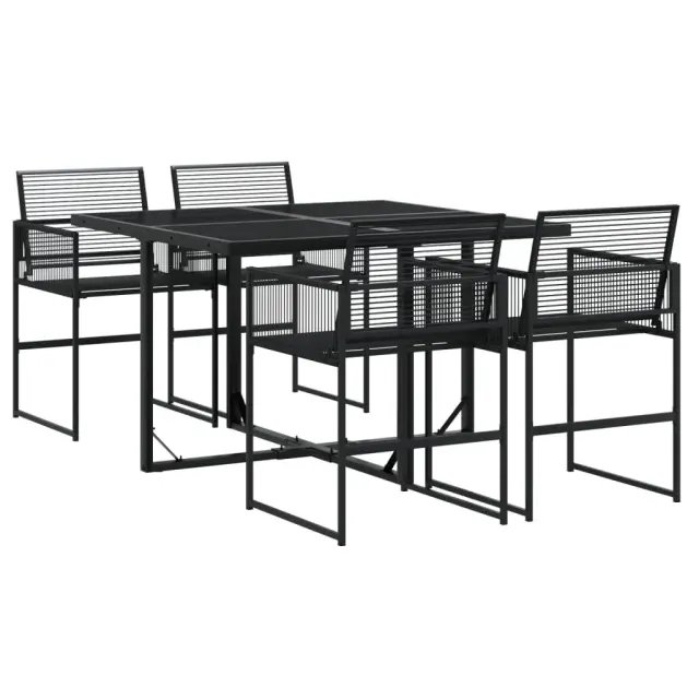 Ta vrtna jedilna garnitura je odlična izbira za večerjo na prostem ali za sprostitev na vrtu, dvorišču ali terasi. Vzdržljiv material: PE ratan, znan tudi kot poli ratan, je močan sintetični material, ki zahteva malo vzdrževanja in je videti kot naravni ratan. Je lahek, enostaven za čiščenje in se zaradi svoje vzdržljivosti in odpornosti na vremenske vplive pogosto uporablja za zunanje pohištvo. Steklena mizna plošča: Površina zunanje mize je izdelana iz močnega in trpežnega kaljenega stekla, kar omogoča enostavno čiščenje z vlažno krpo in vašemu zunanjemu prostoru doda pridih elegance. Kompaktno shranjevanje: Te stole je mogoče zložiti, zato jih je enostavno shraniti pod mizo. Ko so zloženi, se lepo prilegajo pod mizo in tvorijo prostorsko varčno kocko. Dobro je vedeti:Če želite, da vaše zunanje pohištvo ostane lepo, vam priporočamo, da ga zaščitite z vodoodporno prevleko.Maksimalna nosilnost (na sedež): 110 kgUV-odpornoPotrebno sestavljanje: DaMiza:Barva: ČrnaMaterial: PE ratan, jeklo s prašnim premazom, stekloDimenzije: 110 x 107 x 72 cm (D x Š x V)Stol:Barva: ČrnaMaterial: PE ratan, jeklen okvir s prašnim premazomDimenzije: 50,5 x 51 x 81,5 cm (Š x G x V)Velikost sedeža: 47 x 38 cm (Š x G)Višina sedeža od tal: 44 cmVišina naslonjala za roke od tal: 65 cmPaket vsebuje:1 x Vrtna miza4 x Vrtni stol 3295048