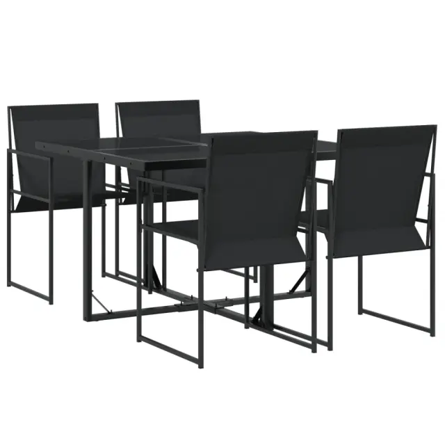 Ta vrtna jedilna garnitura je odlična izbira za večerjo na prostem ali za sprostitev na vrtu, dvorišču ali terasi. Trpežno in dolgotrajno: Zaradi svoje trajnosti, odpornosti na vodo in bledenje, enostavnega vzdrževanja ter zaščite pred UV žarki in plesnijo je tkanina iz tekstilena idealna izbira za zunanje pohištvo in konstrukcije za zagotavljanje sence.Kompaktno shranjevanje: Te stole je mogoče zložiti, zato jih je enostavno shraniti pod mizo.Steklena mizna plošča: Površina zunanje mize je izdelana iz močnega in trpežnega kaljenega stekla, kar omogoča enostavno čiščenje z vlažno krpo in vašemu zunanjemu prostoru doda pridih elegance.Robusten in stabilen okvir: Prašno barvan jekleni okvir zagotavlja, da je vrtno pohištvo močno in stabilno za vsakodnevno uporabo na prostem.Dobro je vedeti:Če želite, da vaše zunanje pohištvo ostane lepo, vam priporočamo, da ga zaščitite z vodoodporno prevleko.Maksimalna nosilnost (na sedež): 110 kgUV-odpornoPotrebno sestavljanje: DaMiza:Barva: ČrnaMaterial: Jeklo s prašnim premazom, kaljeno stekloDimenzije: 110 x 107 x 72 cm (D x Š x V)Stol:Barva: ČrnaMaterial: PE ratan, jeklen okvir s prašnim premazomDimenzije: 50 x 55 x 84 cm (Š x G x V)Velikost sedeža: 42 x 41 cm (Š x G)Višina sedeža od tal: 44 cmVišina naslonjala za roke, merjena od tal: 64 cmPaket vsebuje:1 x Vrtna miza4 x Vrtni stol 3295118