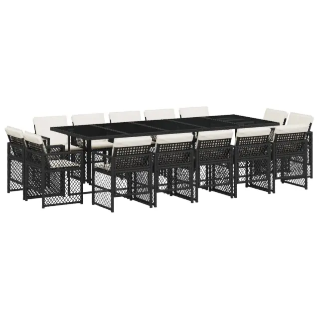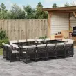 vidaXL Vrtna jedilna garnitura 15-delna z blazinami črn poli ratan