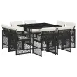 vidaXL Vrtna jedilna garnitura 9-delna z blazinami črn poli ratan