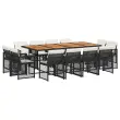 vidaXL Vrtna jedilna garnitura 13-delna z blazinami črn poli ratan