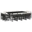 vidaXL Vrtna jedilna garnitura 13-delna z blazinami črn poli ratan
