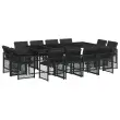 vidaXL Vrtna jedilna garnitura 13-delna z blazinami črn poli ratan